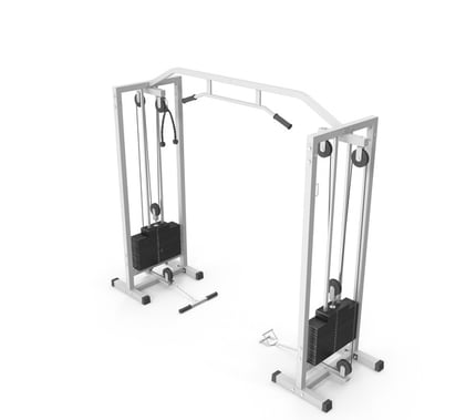 Large dual‑pulley setup enables expansive exercises—from flyes to tricep pull‑downs.