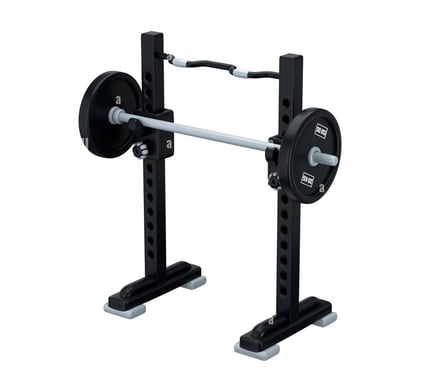 Adjustable J‑hooks & safety spotter arms for secure heavy lifting